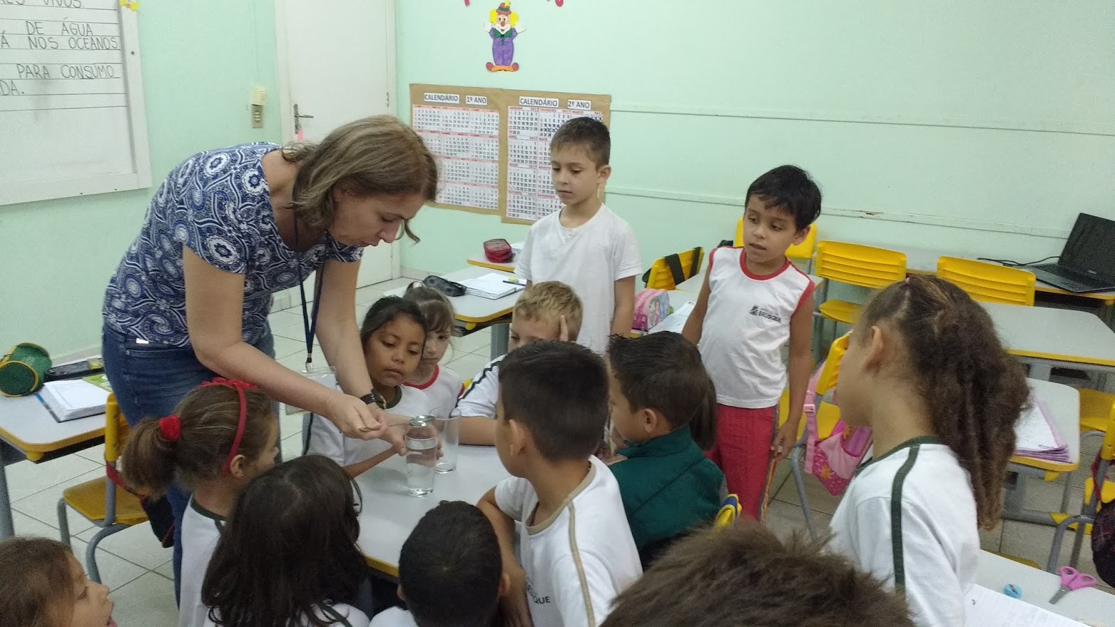 As atividades tiveram início com uma roda de conversa com os alunos sobre a importância que a água tem para a sobrevivência dos seres vivos. Através do Globo Terrestre, os alunos puderam ver que a cor azul predomina no planeta Terra e esta cor representa os oceanos e mares e uma pequena parte da água em nosso planeta é doce.
